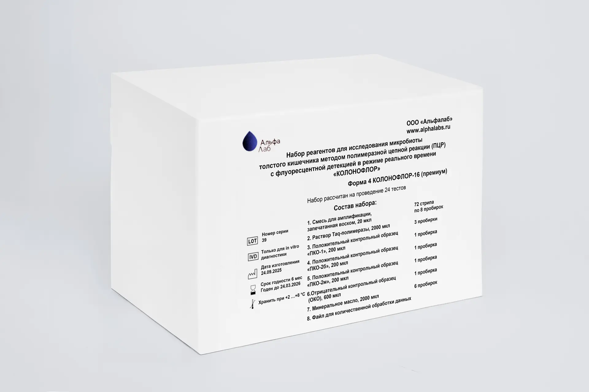 Набор реагентов «КОЛОНОФЛОР» предназначен для количественной оценки состояния микробиоценоза толстого кишечника у детей и взрослых методом полимеразной цепной реакции (ПЦР) с флуоресцентной детекцией результатов амплификации в режиме реального времени.