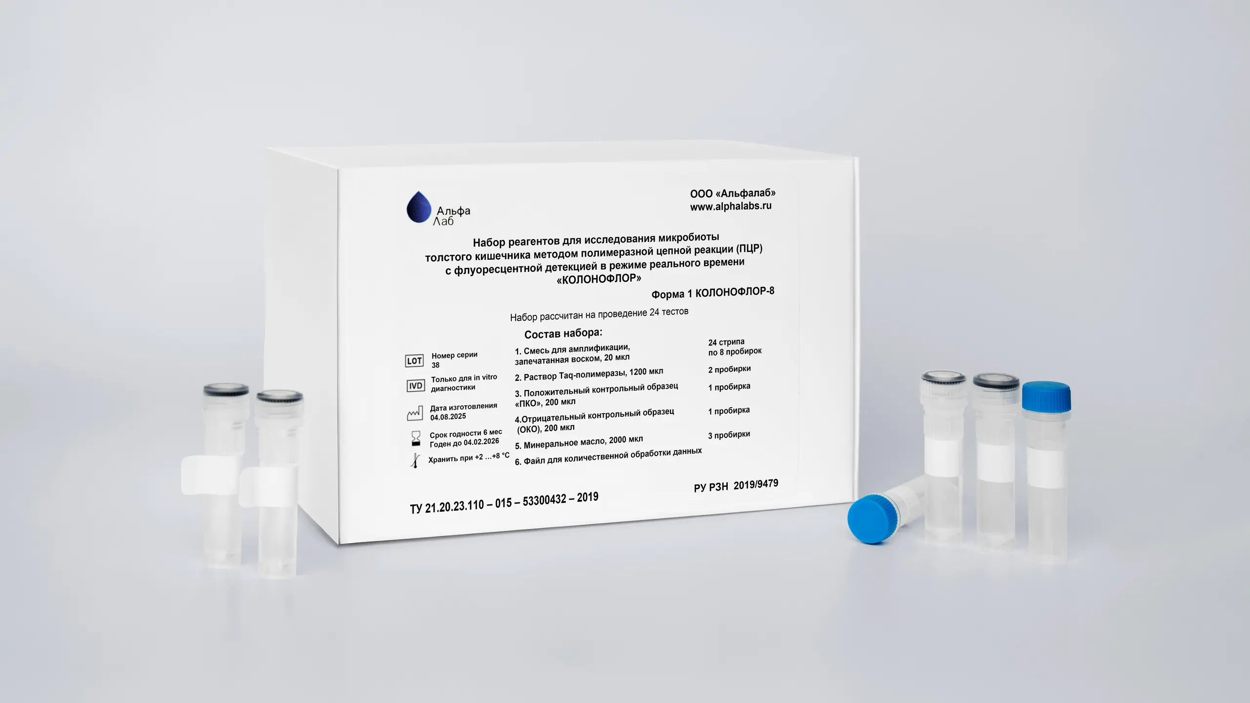 Набор реагентов «КОЛОНОФЛОР» предназначен для количественной оценки состояния микробиоценоза толстого кишечника у детей и взрослых методом полимеразной цепной реакции (ПЦР) с флуоресцентной детекцией результатов амплификации в режиме реального времени.