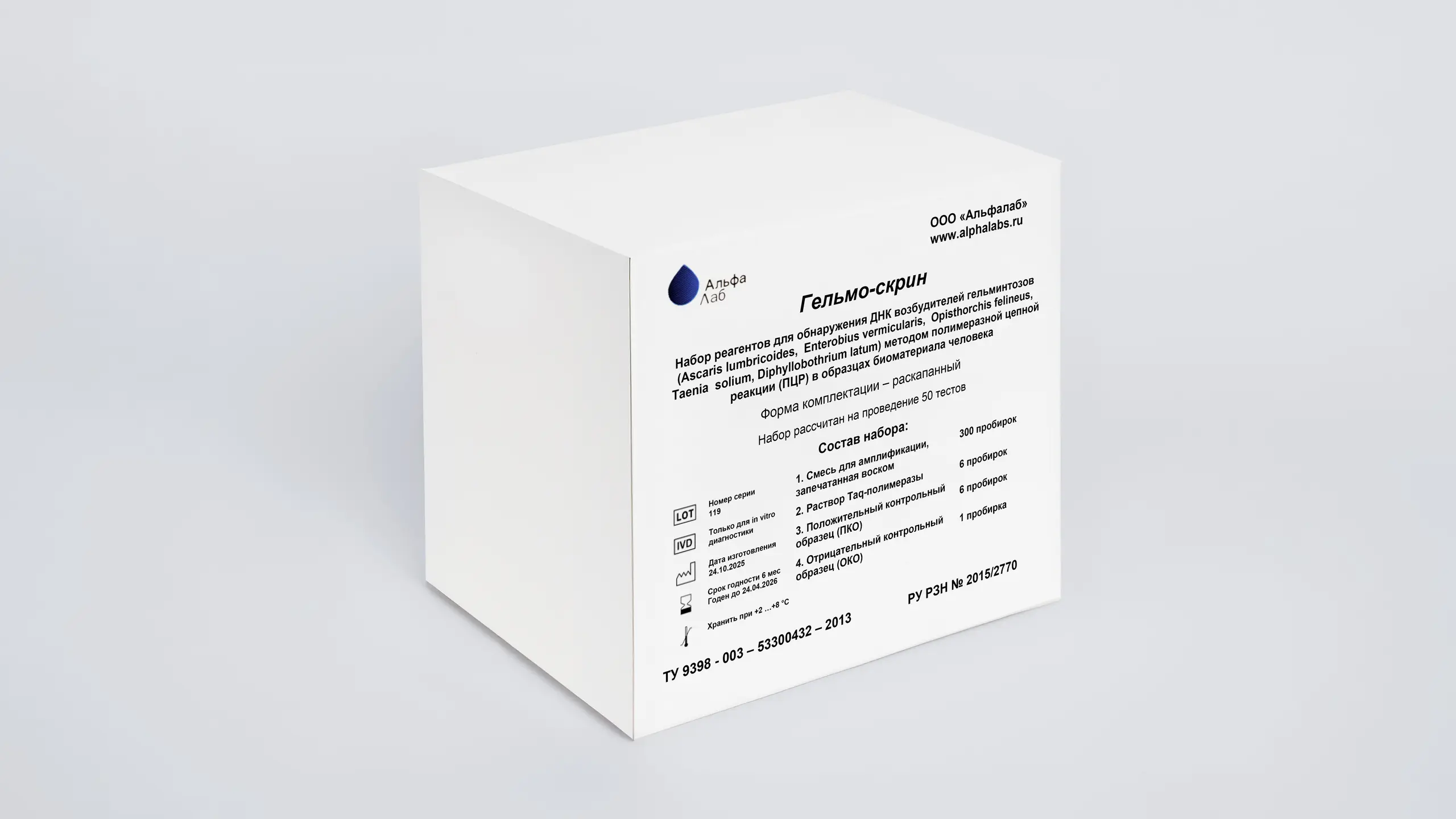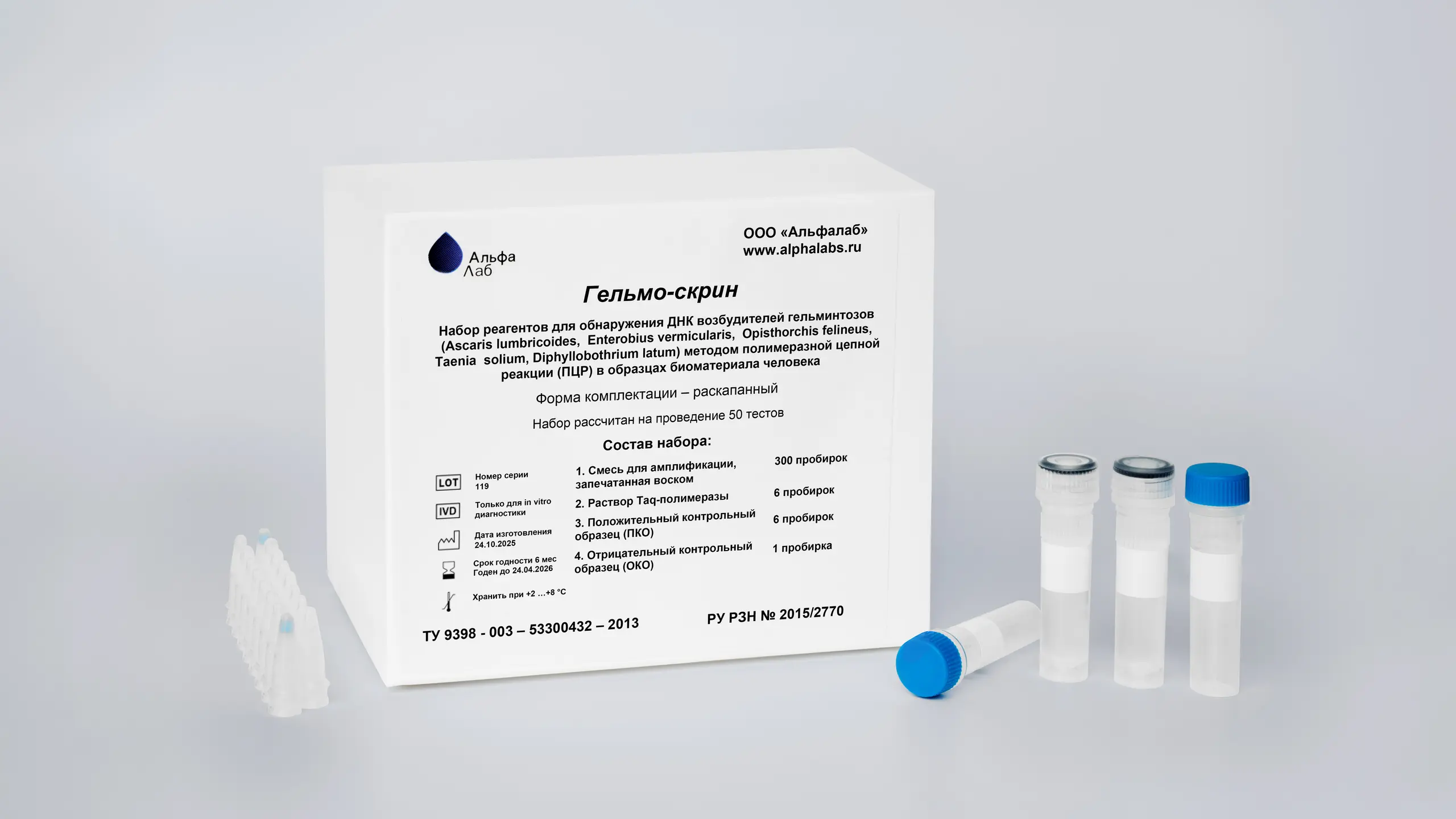 Набор реагентов для обнаружения ДНК возбудителей гельминтозов (Ascaris lumbricoides, Enterobius vermicularis, Opisthorchis felineus, Taenia solium, Diphyllobothrium latum) методом полимеразной цепной реакции (ПЦР) в образцах биоматериала человека