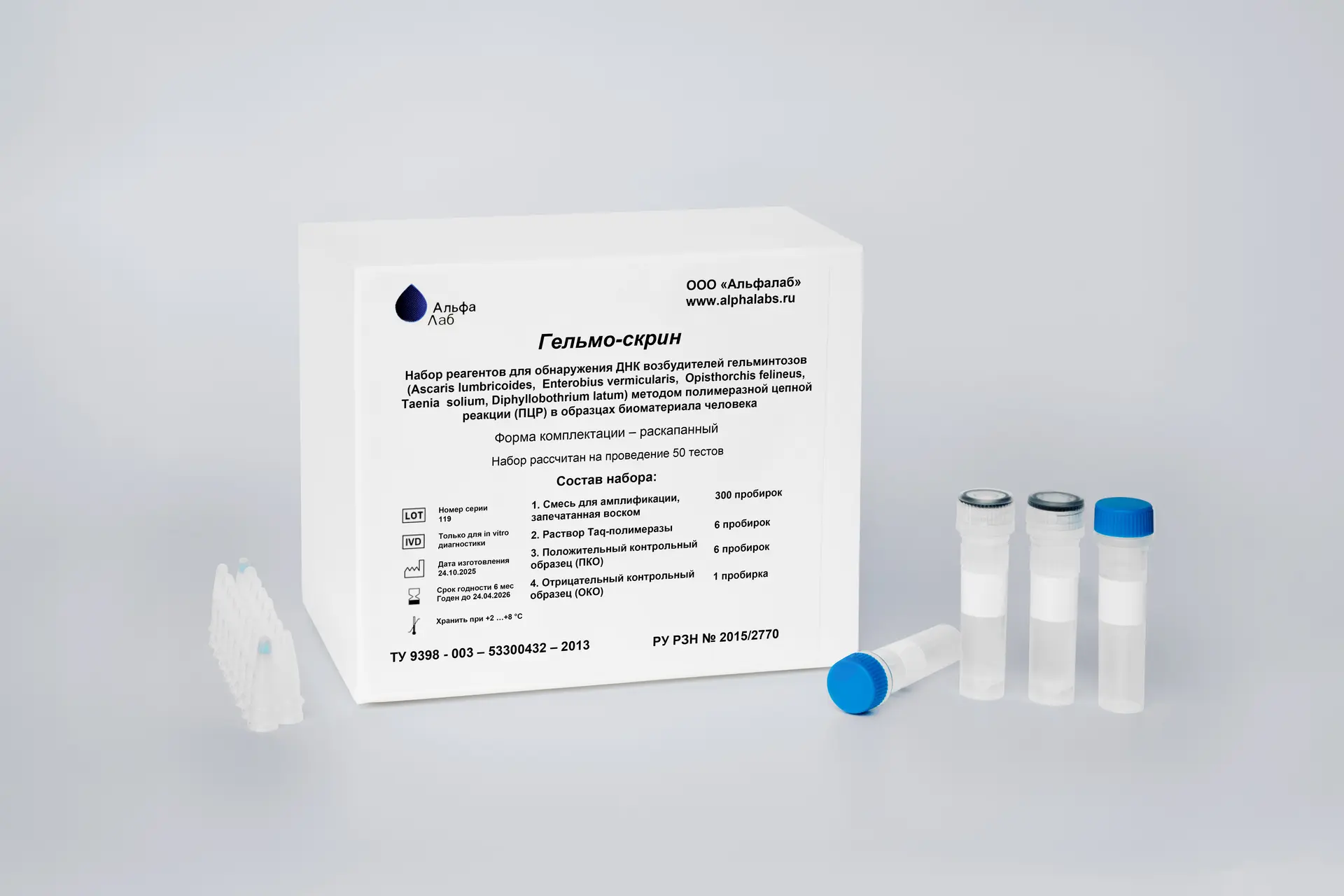 Набор реагентов «Гельмо-скрин»предназначен для выявления наиболее часто встречающихся у человека гельминтозов (энтеробиоза, аскаридоза, дифиллоботриоза, описторхоза, тениоза) в фекальных образцах. Перечисленные инфекции имеют общие пути заражения и могут иметь сходные клинические проявления (нарушения функций желудочно-кишечного тракта, аллергические реакции, астенизация и др.), что обуславливает необходимость одновременного скрининга на наличие указанных возбудителей и проведения дифференциальной диагностики. Cимптоматика вяло протекающих паразитарных болезней неспецифична, что заставляет большинство пациентов обращаться к непрофильным специалистам: аллергологу, гастроэнтерологу и т.д., в зависимости от ведущих симптомов заболевания. Кроме того указанные заболевания нередко протекают бессимптомно.